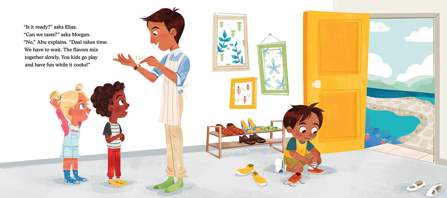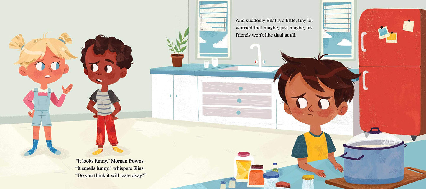 Six-year-old Bilal is excited to help his dad make his favorite food of all-time: daal! The slow-cooked lentil dish from South Asia requires lots of ingredients and a whole lot of waiting. Bilal wants to introduce his friends to daal. They've never tried it! As the day goes on, the daal continues to simmer, and more kids join Bilal and his family, waiting to try the tasty dish. And as time passes, Bilal begins to wonder: Will his friends like it as much as he does?