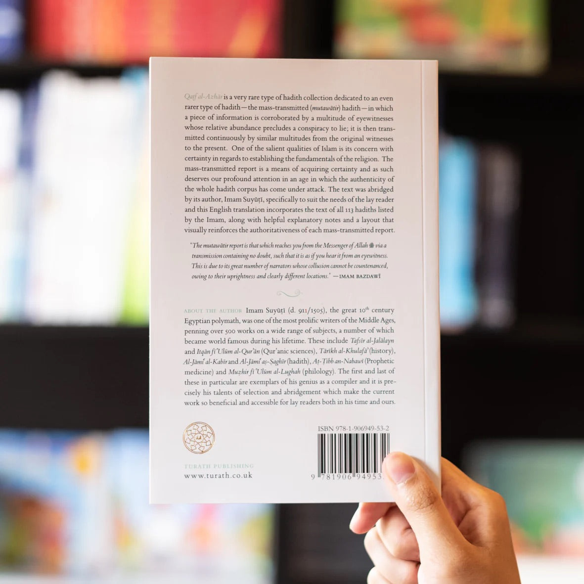 Qaṭf al-Azhār is a very rare type of hadith collection dedicated to an even rarer type of hadith — the mass-transmitted (mutawātir) hadith — in which a piece of information is corroborated by a multitude of eyewitnesses whose relative abundance precludes a conspiracy to lie; it is then transmitted continuously by similar multitudes from the original witnesses to the present. One of the salient qualities of Islam is its concern with certainty in regards to establishing the fundamentals of the religion. The mass-transmitted report is a means of acquiring certainty and as such deserves our profound attention in an age in which the authenticity of the whole hadith corpus has come under attack. The text was abridged by its author, Imam Suyūṭī, specifically to suit the needs of the lay reader and this English translation incorporates the text of all 113 hadiths listed by the Imam, along with helpful explanatory notes and a layout that visually reinforces the authoritativeness of each mass-transmitted report.